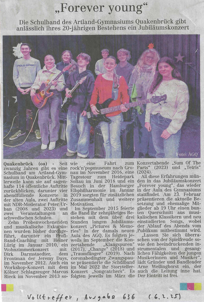 Artikel "AGQ-Schulband seit 20 Jahren 'on fire'" (MQ+, Ausgabe 1/2025)