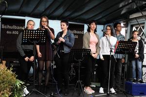 Ihren ersten öffentlichen Auftritt im neuen Jahr hatte die Schulband am 10.2.2017. Im Rahmen des Tages der offenen Tür am AGQ spielten wir zwischen 15:00 und 18:00 Uhr in der Pausenhalle für die zukünftigen Fünftklässler und ihre Eltern. Zuvor hatten wir bereits die Begrüßungsveranstaltung in der Aula mit den Stücken "Renegade" (Styx) und "Hit the road, Jack" (Ray Charles) sowie einem A-Capella-Solo von Muriel Menz maßgeblich musikalisch mitgestaltet.